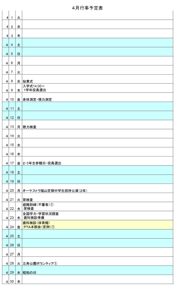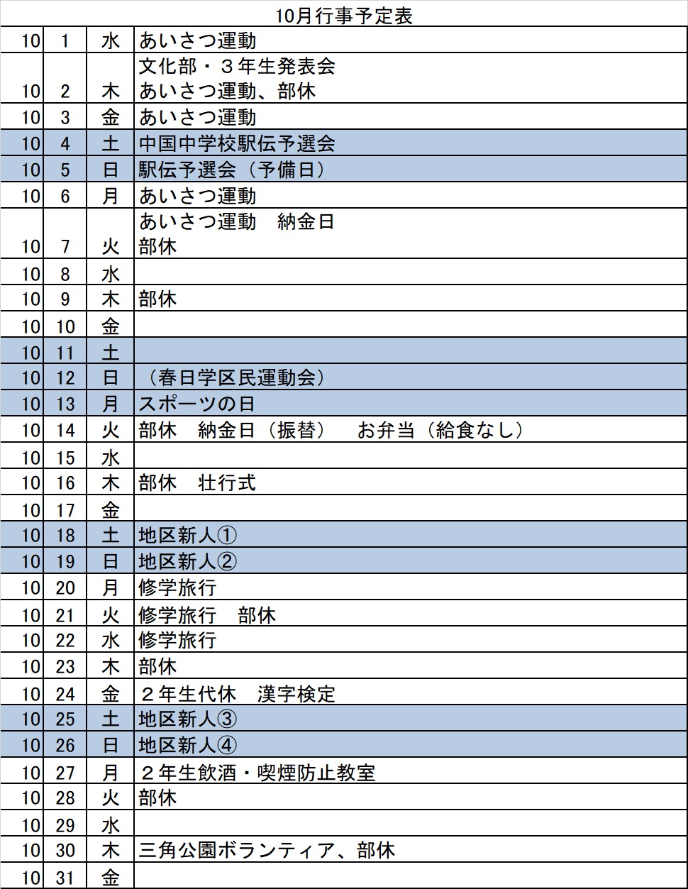 生活五訓:あいさつ・時間・服装・美化・姿勢