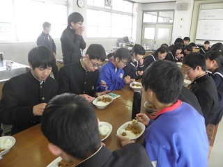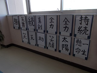 生徒会執行部立ち上げ準備会 平成30年1月4日(木) 12月27日,1月4日の2日間,新執行部の立ち上げのため,旧執行部との引き継ぎ会を行いました。委員会ごとに活動方針や内容,委員会の進め方など入念に引き継ぎをしました。引き継ぎ後は,全員で協力して調理した食事を囲み,結束を深めました。4日には,各自の意気込みを「書き初め」というかたちで表し,決意を新たにしました。執行部が一致団結し,学校を引っ張ってほしいです。