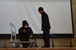 避難訓練(不審者対応) 平成30年2月23日(金) 23日(金),校内に不審者が侵入したという想定で避難訓練を行いました。不審者の身柄を確保して安全を確かめた後全員が体育館へ集まり,不審者と出会った時,どう対応すれば良いかを,シミュレーションを通して皆で考えることができました。万が一のための訓練ですが,いざという時に行動できるよう,準備しておきましょう。