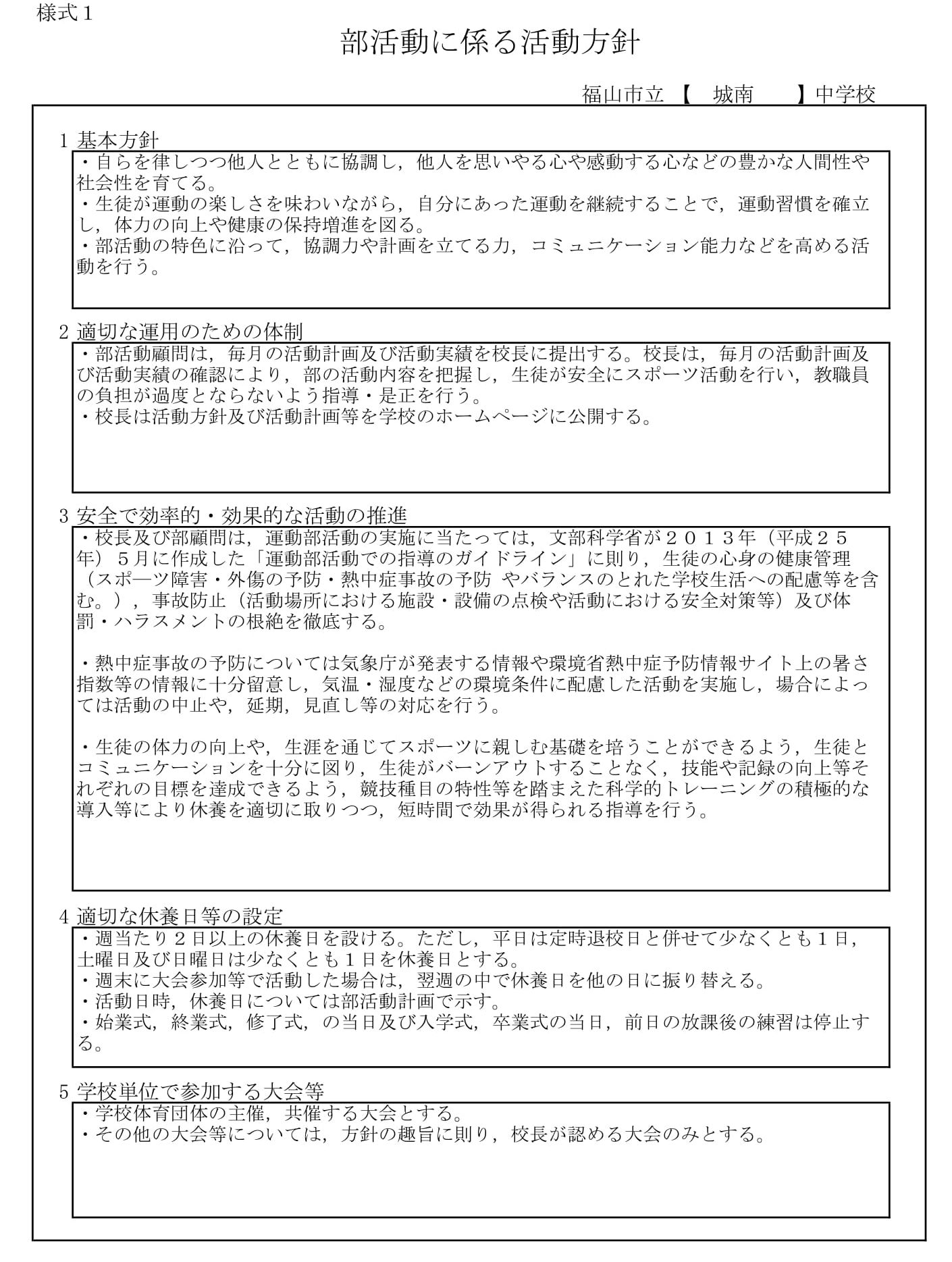 部活動に係る活動方針