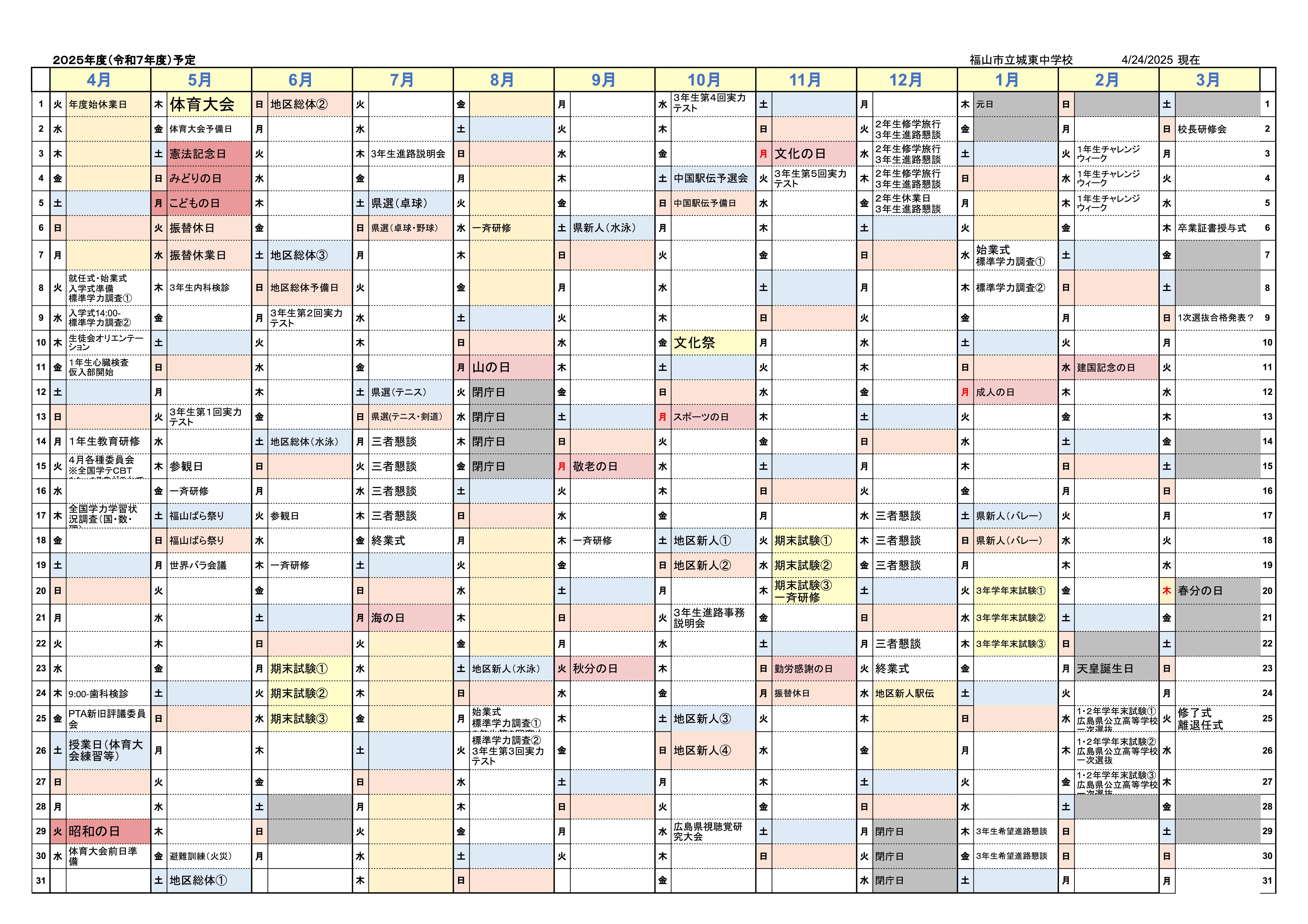 令和7年度年間行事予定