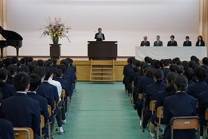 本年度の定期人事異動により,他校への移動が決まった5名の先生の離任式を行いました。新しい学校での益々のご活躍を応援しています。