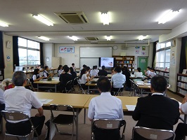 放課後,東朋中学校で行われた東部ブロック生徒会交流会に参加しました。生徒会長・副会長が城東中学校の代表として本校の取組を発表しました。