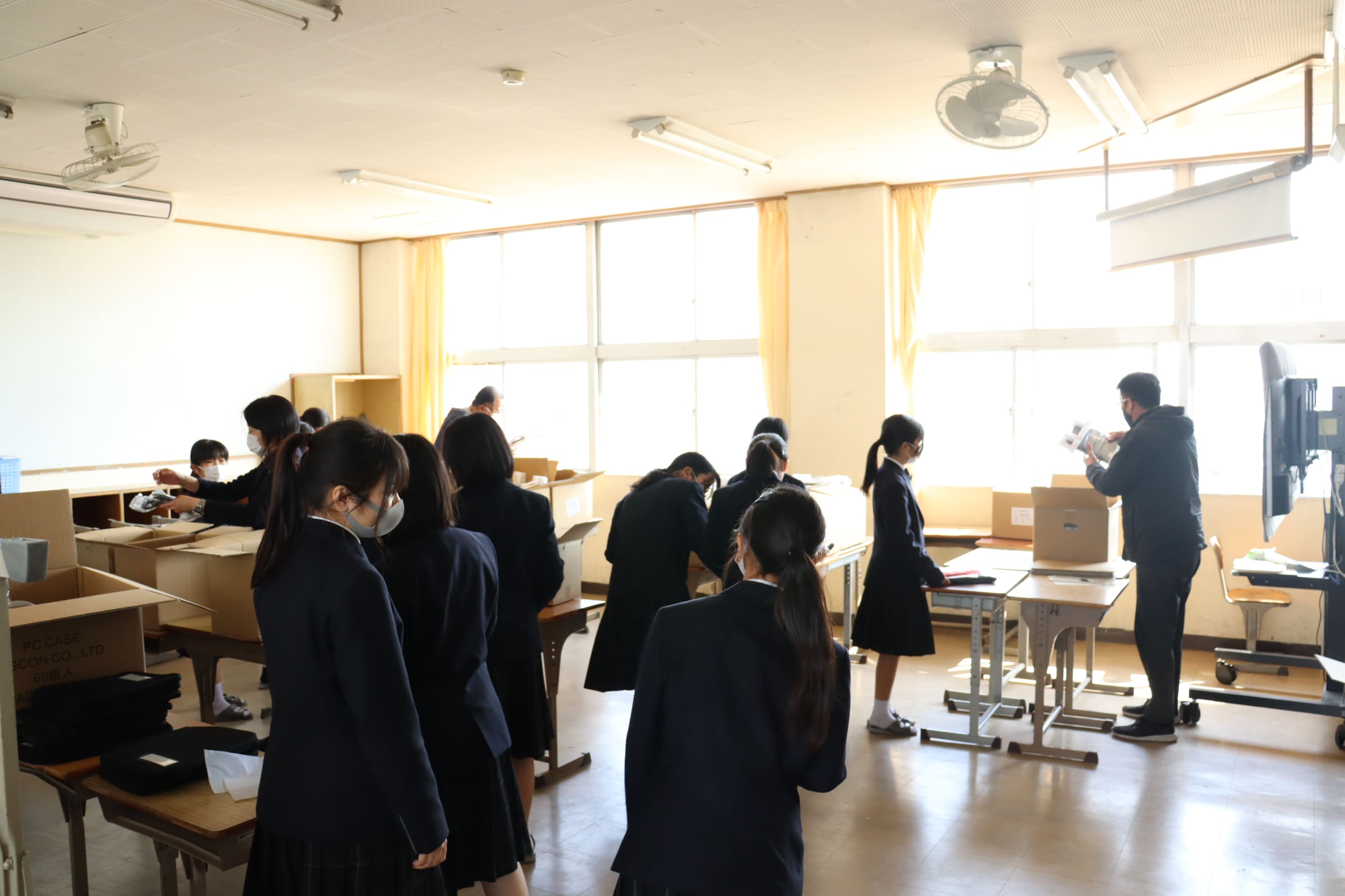 本日,生徒一人ずつにタブレット端末を配布しました。自分たちで決めたルールを守り,正しく使用しましょう。