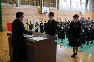 本日、修了式と離退任式を行いました。城東中学校を去られる先生方のこれからのご活躍を応援しています。