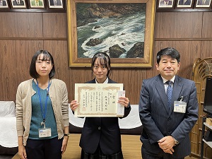 税の作文・書写の作品展で、入選した生徒の表彰式が行われました。城東中学校では、10名の生徒の皆さんが表彰されました。