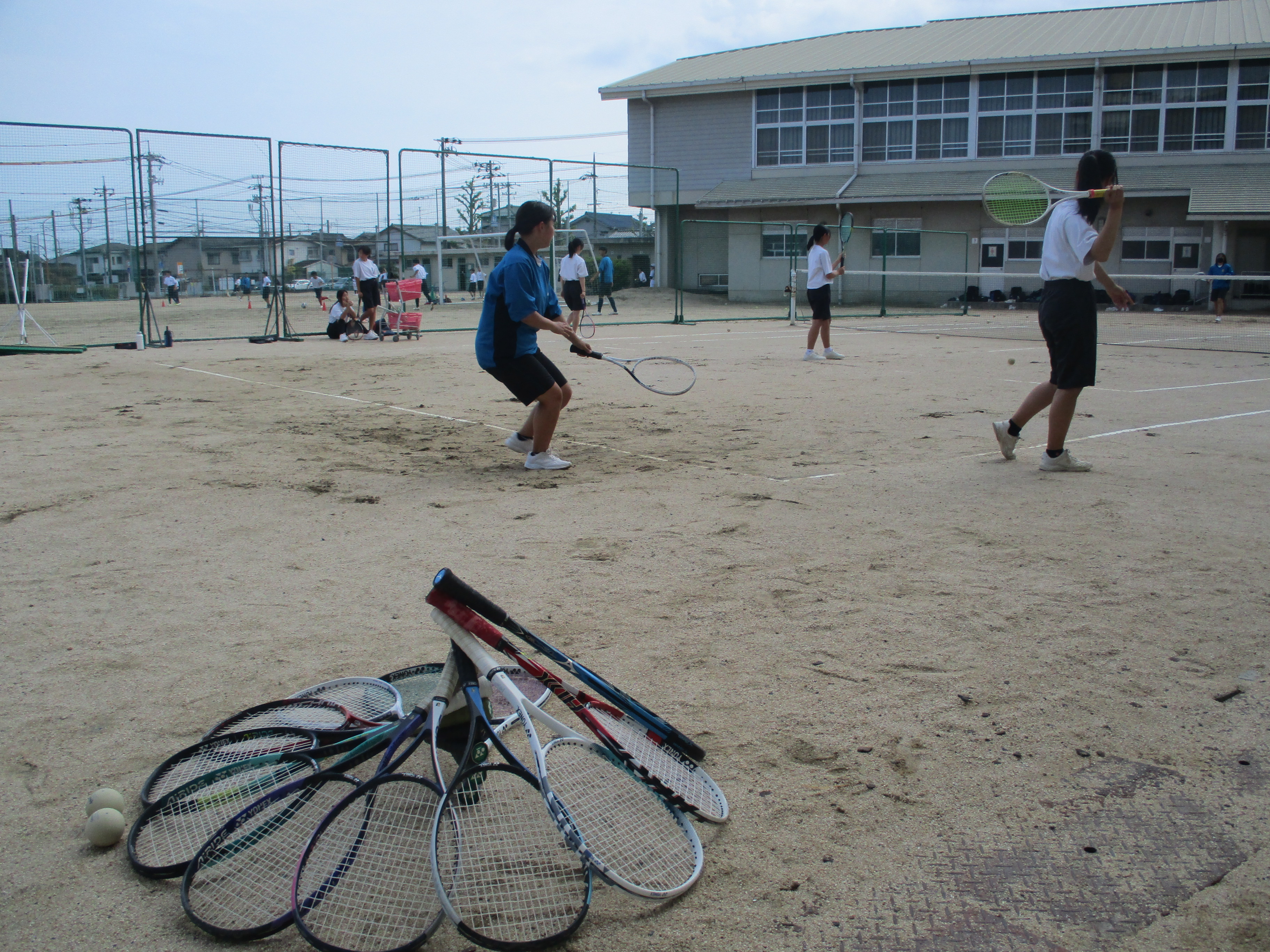 男子ソフトテニス部では、前衛練習、後衛練習、サーブ練習などをしています。