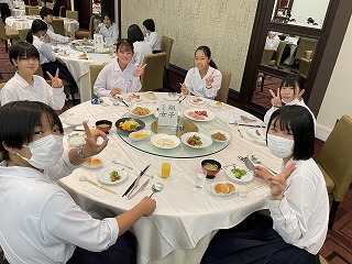 修学旅行最後のみんなでの朝食です。