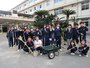 | 投稿11 向中ボランティア部(有志)、あんず広場の清掃活動に参加! 12日(土) 今日は校区ボランティアの日。朝早くから12人の生徒があんず広場に集まりました。去年の公園清掃は、地域の方がゲートボールをしている横でゴミ拾いをしました。今年は生徒会長が地元の交流館長・町内会連合会長に連絡を取り、地域の清掃活動の日程に合わせて合同で参加させてもらえるよう調整しました。 草刈り機を持参された方はさすがの行動力!ズバズバ草を刈っていかれます。軍手一つの私たちは、地道に抜くだけです。しかしながら、途中から一輪車やゴミ袋を持って、抜かれた草を拾い集めるなど、自発的に行動するようになりました。地域の人とも打ち解け、少しずつ協働する姿が見えてきました。 「自分らが大人になった時、今回の体験を思い出して、公園の清掃活動や、地域の取組に参加してもらえたらえーのー。」 大切な言葉と励ましを頂いて、1時間の清掃活動が終わりました。 |