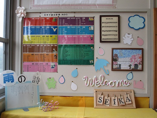 涼しい雨の,あの色が好き……。 図書館に足を運んで,カエルやカタツムリが推薦する本を手にとってみませんか。