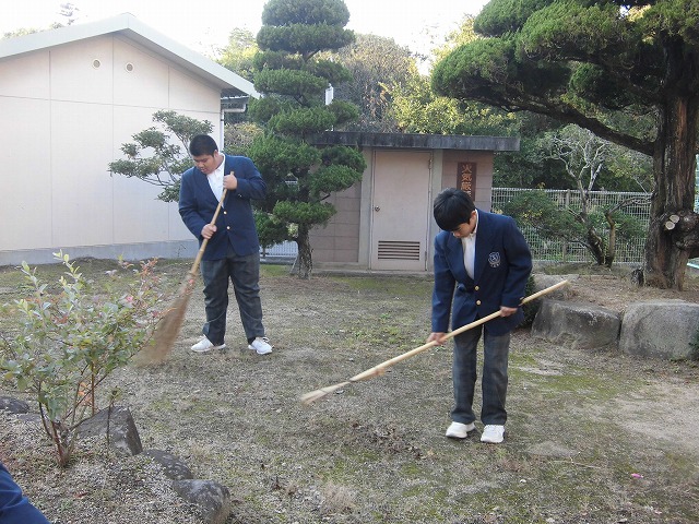 生活委員会主催のボランティア活動を行いました。 1年生が校舎階段,2年生が下駄箱・中庭,3年生が校舎廊下・手洗い場の清掃を丁寧に清掃しました。