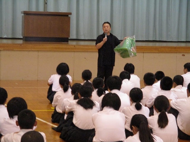 学校長 式辞 : 三つのお話がありました。1つめは「出会いを大切に」です。 人は一生で2万人の人と出会うと言われています。 人の考えをしっかり聞いて自分の考えを深めてください。 2つめは「ことばに責任を持つ」です。ことばは大きな力を持っています。 ことばによって救われる人もいるし,命を失う人もいます。 一度発したことばは取り消せないことが多いです。 だからこそ,ことばを発する前に立ち止まりしっかり考えて発してください。 3つめは,「日々の授業を大切にする」です。 どんな嵐にも木々は耐え成長します。 それはしっかりした根っこがあるからです。 みなさんも困難に立ち向かうことのできるしっかりした根っこ, すなわち地盤を築いてください。 2学期は,敬老会や体育祭,文化祭等々,みなさんの力が発揮できる地域行事がたくさんあります。 郷土を愛するみなさんだからこそできることがたくさんあります。 積極的に参加し人間性を磨いてください。