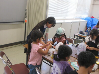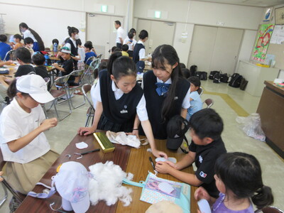7月25日(金)29日(火)に本校の美術部・家庭科部の生徒が小学生にプラバン制作やマスコットキーホルダー作りを教えるくわいっ子教室を行いました。生徒は小学生の目線に立って作り方を丁寧に説明しながら、優しく関わる姿が見られました。ものづくりを通して、学年を越えた温かな交流の時間になりました。