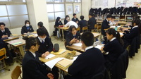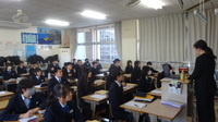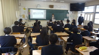 11月21日租税教室を行いました。本教室では講師の方をお招きして、税金の役割や私たちの生活との関わりについて、分かりやすく説明していただきました。授業では、「税金は何のためにあるのか」「税金が使われている場面」などを、資料や具体的な例をもとに学びました。生徒は学校や道路など、身近な公共サービスが税金によって支えられていることを知り、真剣な表情で話を聞いていました。今回の租税教室を通して、生徒は社会の一員としての自覚を高め、将来に向けて責任ある行動について考える貴重な機会となりました。