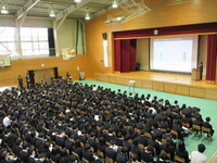 1月16日に東北大学の榊教授をお招きし「スマートフォンの利用と学力の関係」についての講演会を実施しました。講演では、スマートフォンの利用時間が1日3時間を超えると学力の向上が見られにくくなるといった、データに基づいたお話があり、生徒たちは大きな関心をもって耳を傾けていました。生徒からは「自分の生活を見直したい」「スマホとの付き合い方を考えたい」といった声も聞かれ、スマートフォンの使い方を自分事として捉え、主体的に考える機会となりました。今回の講演を今後の生活習慣や学習への意識向上につなげていきたいと考えています。