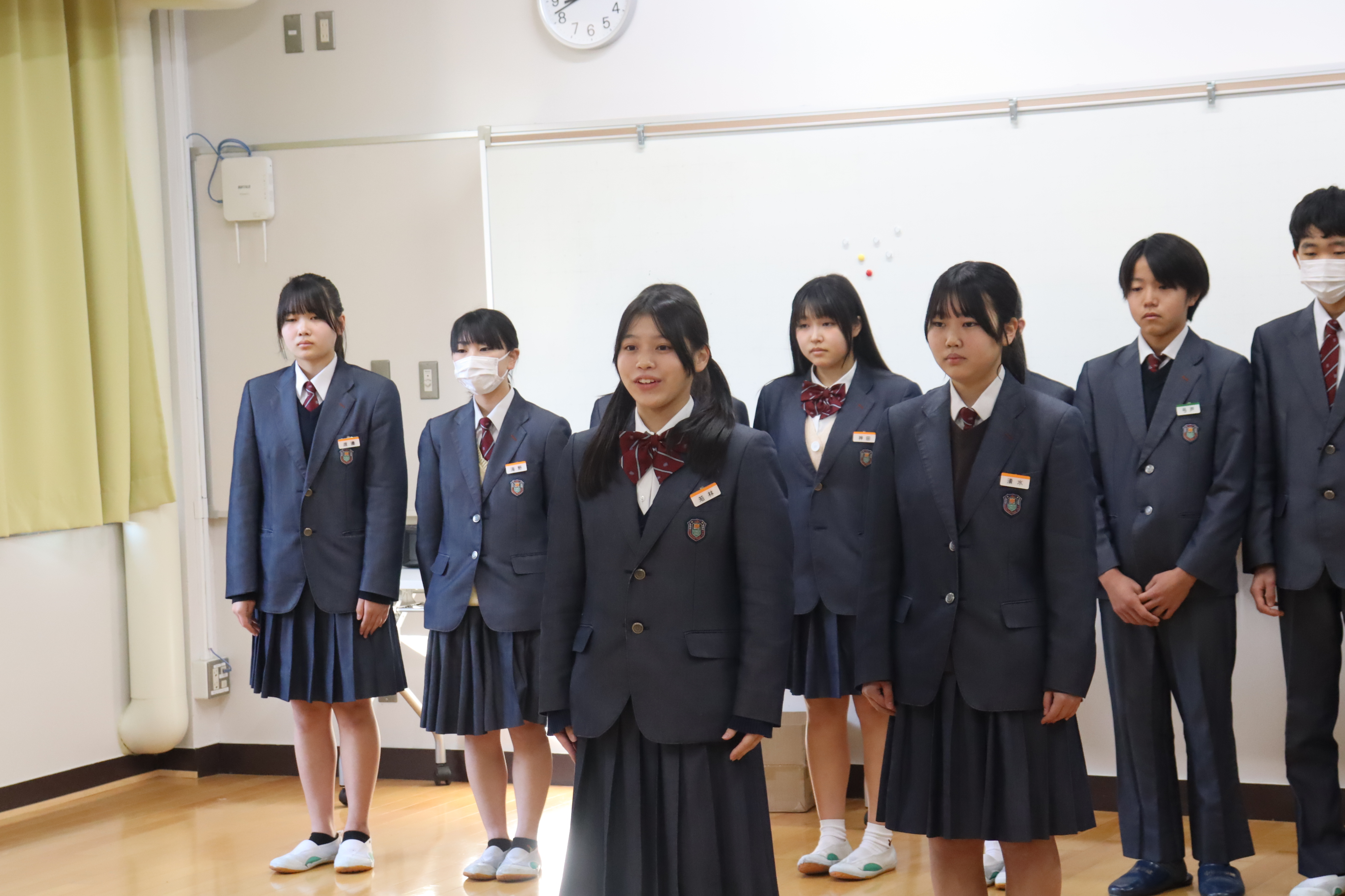 最初に、新旧生徒会執行部の引継ぎを行い、旧執行部員が執行部を
