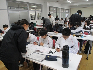 参加した生徒たちは、プリントやワークの課題に取り組み、わからないところを