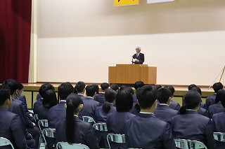 3月5日(木) 明日の卒業式を前に3年生153名の同窓会入会式が、黒木会長様