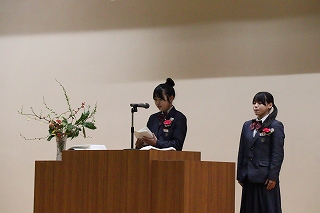 在校生送辞では、先輩への感謝の気持ちと、バトンを引き継ぐ決意が述