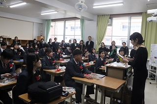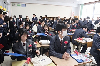 式後に、それぞれのクラス担任が工夫を凝らした最後の学活を行い、思