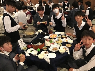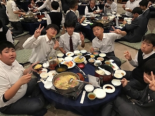 ホテルに入ってから、入館式を行い、夕食をとっています。
