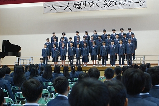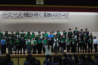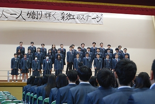 全校合唱「時を超えて」は,全生徒のハーモニーが聴衆の心を