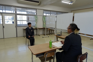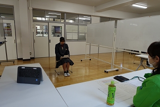 生徒は一人ずつ、面接官の前に進み、面接官からの質問に答えたり、自分の