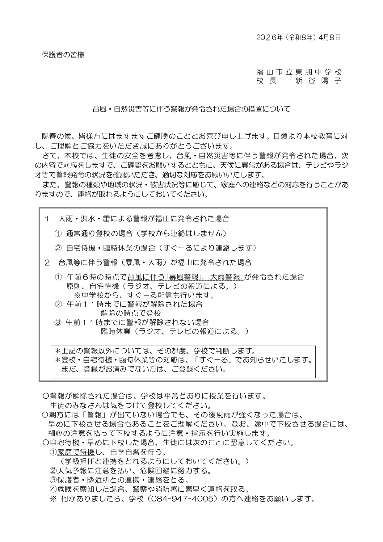 大雨など警報発令時の対応