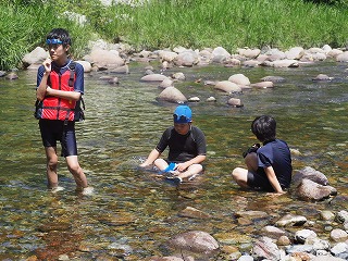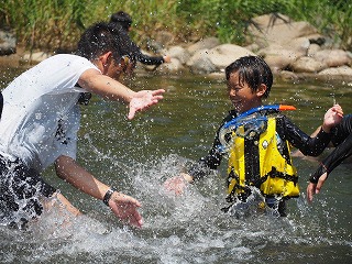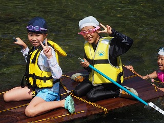 山野農村公園に水遊びに行きました。 広瀬タイムで作ったイカダを浮かべたり,水鉄砲で遊んだりと安全に気を付けて楽しく活動ができました。