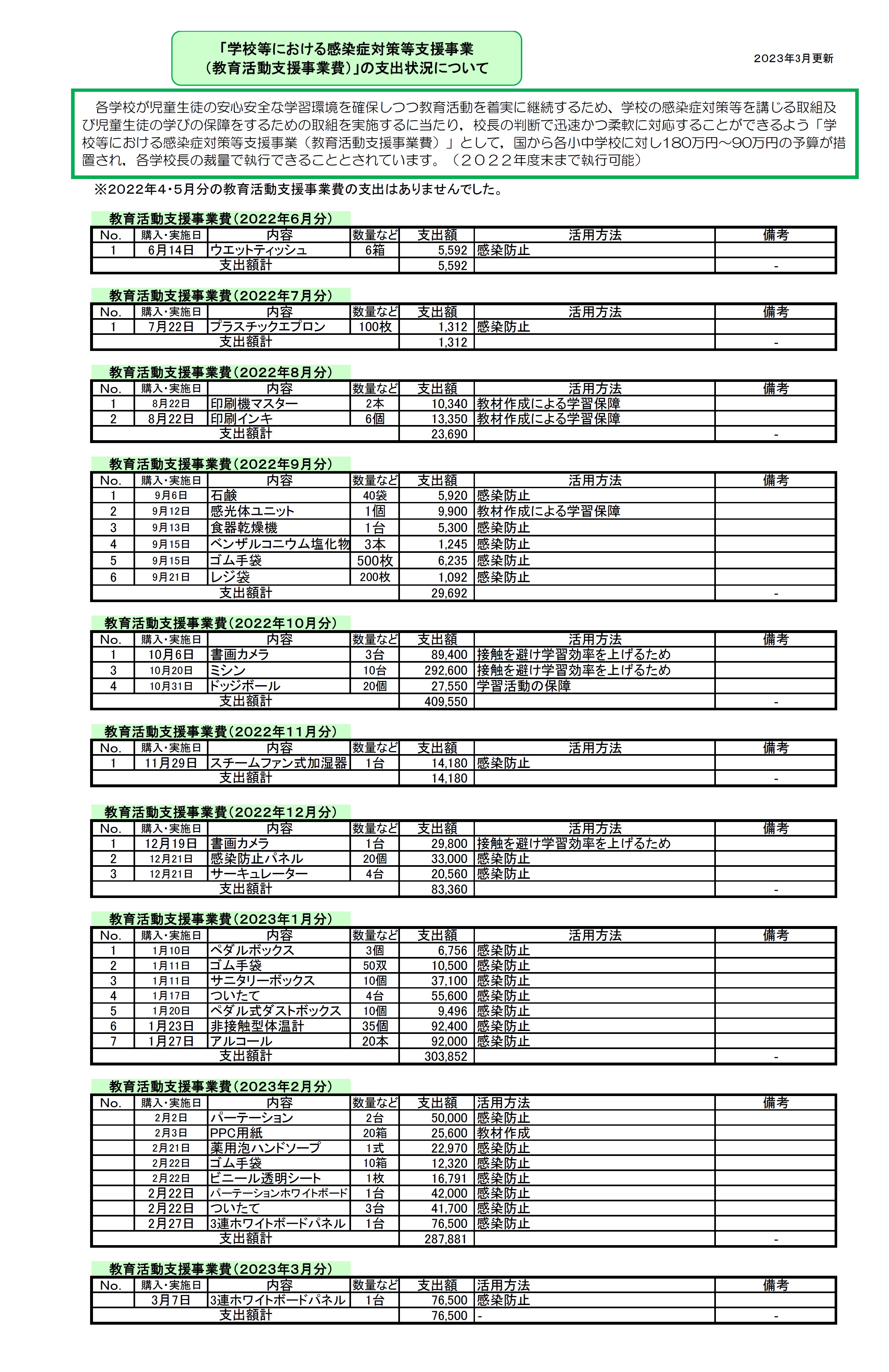 2022年度 「教育活動支援事業費」支出状況 3月更新