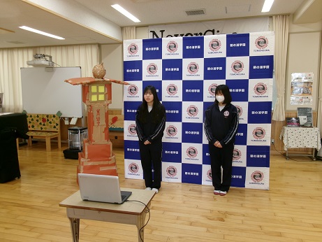 A cruise ship from the U.S. arrived at Tomo, and the 9th graders were divided into five groups and gave English guided tours to visitors at five different locations: a nightlight, the former Ota residence, the taityoro, the ferry terminal, and the Nunakuma Shrine.