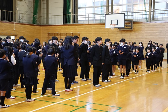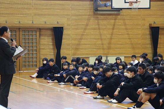 校長先生から「たくさんのことに挑戦し成長することができた2学期でした。一日一日を大切に、あたり前のことをばかにせずきちんとできるようにし、冬休みや新しい年も頑張っていきましょう。」と話され、