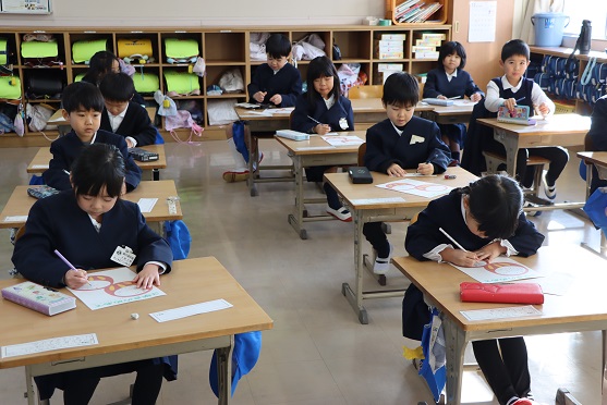 2年生になって,数日が経ちました。2年生の勉強に子どもたちはワクワクしながら取り組んでいます。書写では,姿勢に気を付けて集中している様子が見られました。子どもたちは,ゆっくり丁寧に書くことを意識し,美しい字を書くことができ満足そうな様子でした。掃除や給食当番は,2年生のみんなが協力して自分達の力で一生懸命に動いていました。