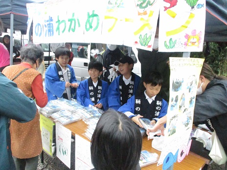 鞆の浦学園児童生徒とクラタ食品さんで共同制作した「鞆の浦わかめラーメン」を軽トラで販売しました。