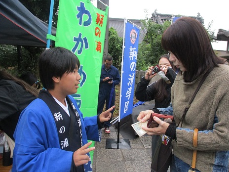 商品出しも自分で行い、「わかめラーメン!おいしいですよ~!」と威勢のいい呼び込みもできました。、