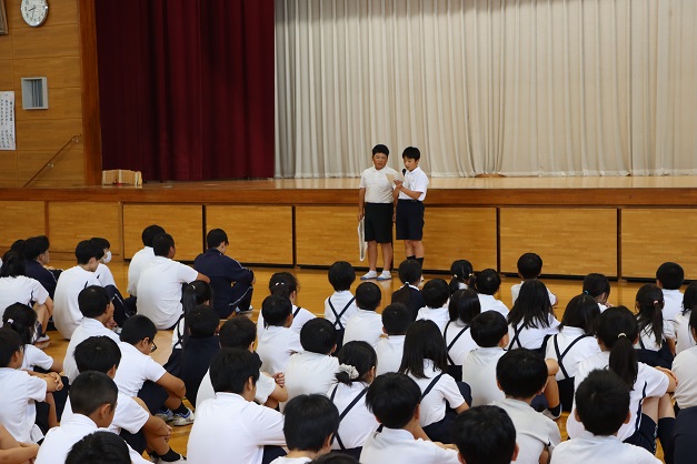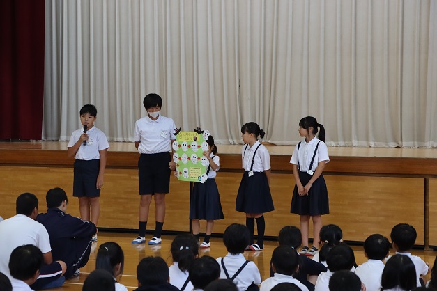 学園会役員は「2学期は行事も多くあります。一つ一つの行事でみんなで協力し合い、普段からも何事にも一生懸命取り組み成長し、充実した2学期にしていきましょう。」と話しました。