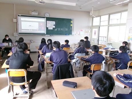 3時間目に9年生が技術科の授業で学んだ情報機器の使い方や情報モラルについて前期課程の児童に授業を行いました。
