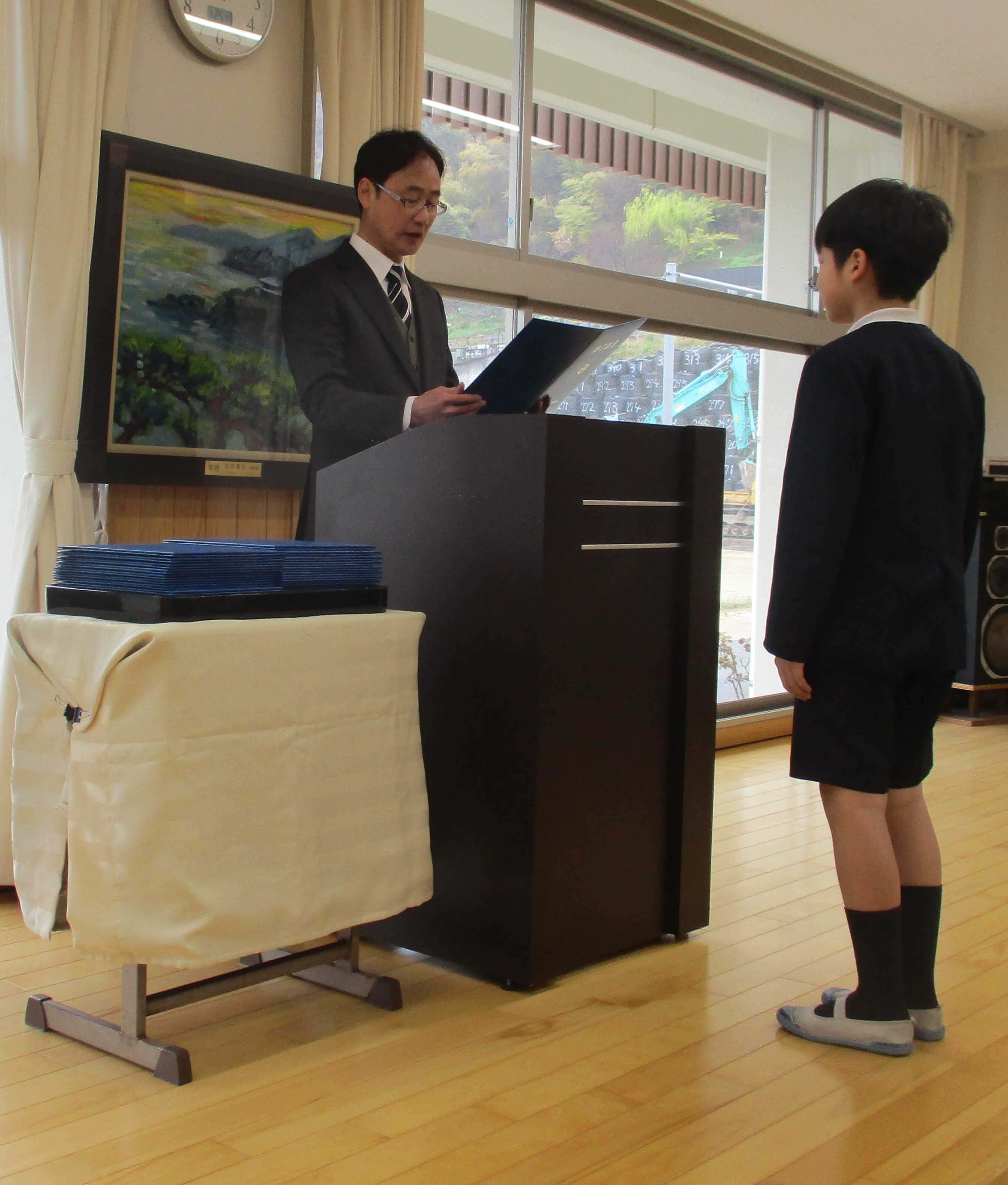 「よろしくお願いします!」…体育館に1年生の声が響きます。期待と夢がふくらむ入学式となりました。今年も校外学習で,地域にどんどん足を運んで学びを広げてまいります。地域の皆様には大変お世話になります。どうぞご協力よろしくお願いします。