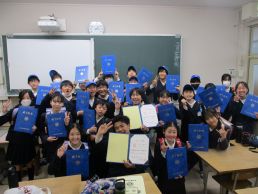 9年生はプレゼントに照れながらも嬉しそうにしていました。