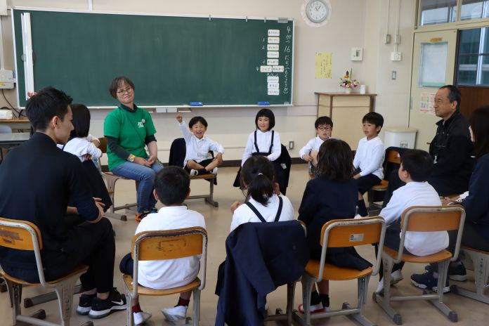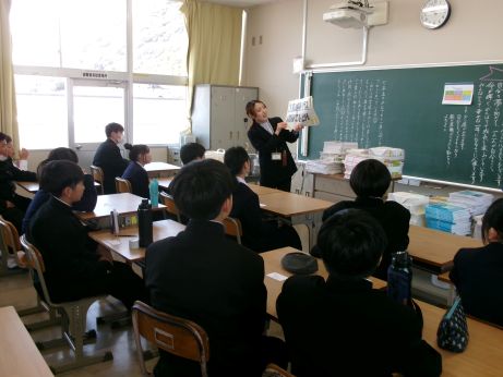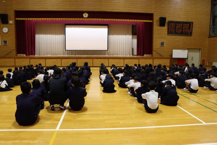 小川さんから児童生徒に「まずは地球儀を手に取って,自分達の住んでいる日本をさがしてください。そして様々な国について興味をもってくれると嬉しいです。」と話されました。