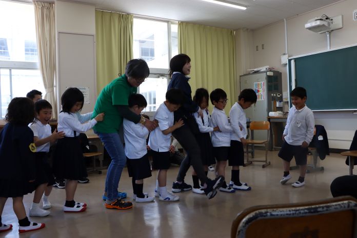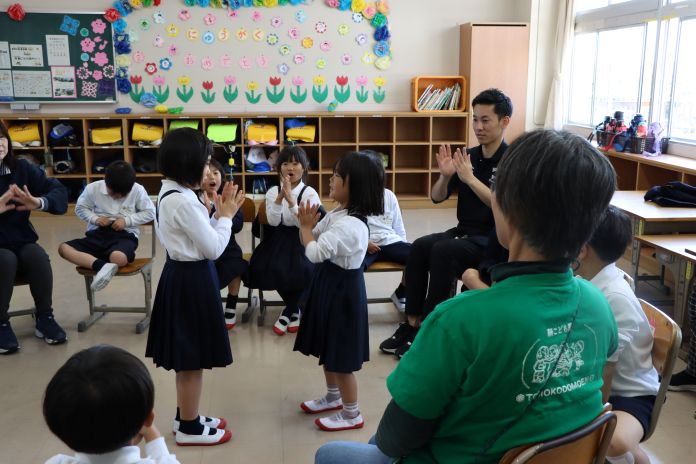 1年生が、こども園の先生と授業を行いました。