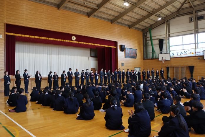 壮行式では、大会に向けた決意が述べられ、画面越しではありましたが各教室から温かい拍手と応援が送られました。