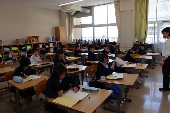 4年生は、初めてのデジタル教材に取り組んでいました。自分のペースで問題を解き、正解や間違ったところを確認しながら学習を進めていました。