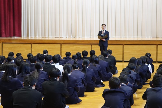 校長先生から「たくさんのことに挑戦し成長することができた2学期でした。一日一日を大切に、あたり前のことをばかにせずきちんとできるようにし、冬休みや新しい年も頑張っていきましょう。」と話され、
