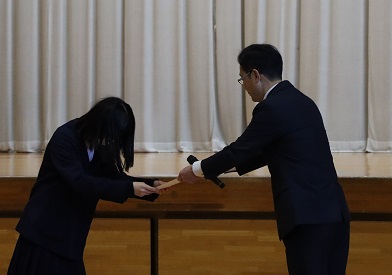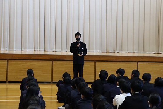 学園会会長は、「2学期は友達と協力し、支え合い仲が深まった2学期だったと思います。明日からの冬休みは体調に気をつけて充実した冬休みにしていきましょう。この2学期の経験をいかして、また目標に向かって頑張りましょう!」と話しました。