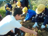| いもほりをしました。 | 11月21日なかよし学級の児童がいもほりをしました。大小さまざまな形のものを掘りました。数えてみると81個もあったそうです。 | ![]() |
