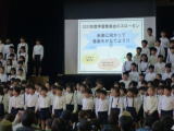 | 音楽朝会 | 9月24日音楽朝会を行いました。今回は学習発表会で歌う「ふるさと」を歌いました。出だしの言葉をはっきりと出すこと,大きな声を出すためには息遣いに気をつけることを意識して歌いました。 | ![]() |