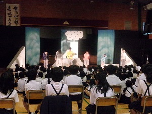 先日、劇団のばらさんに学校に来ていただき、劇をしていただきました。ドキドキハラハラするストーリーで、こどもたちもとても楽しみながら鑑賞していました。劇の最後には劇中歌を劇団員の方と一緒に歌わせて頂きました。
