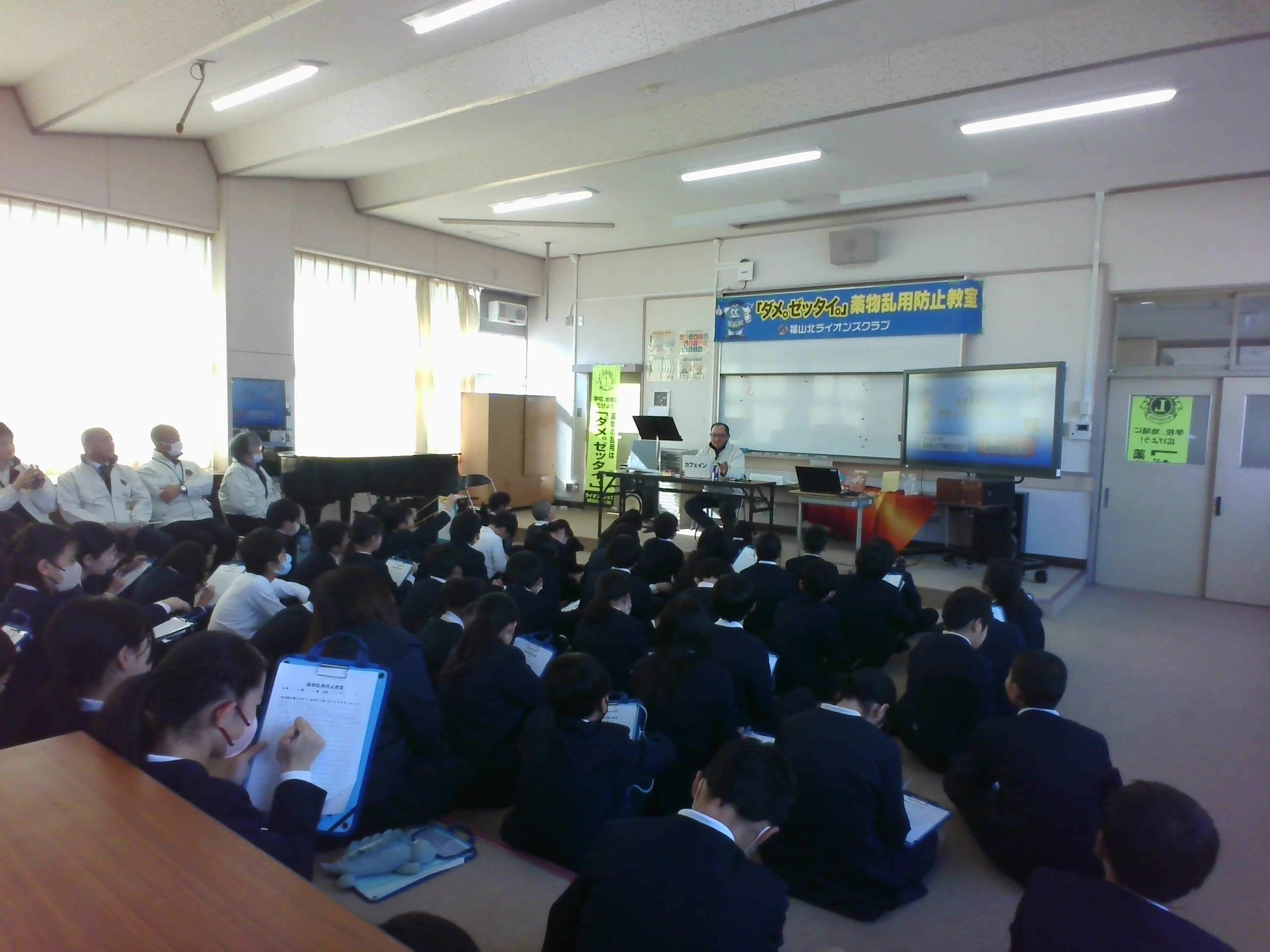 13日(火)にライオンズクラブによる、薬物乱用防止教室がありました。薬物の危険性や依存症の恐ろしさ、薬の正しい使い方などについて学習しました。市販薬を用法容量を守らずに大量に飲むオーバードーズが社会問題になっており、薬物乱用の危険は身近に存在していることについても知りました。薬物乱用から自分自身や大切な人を守るために、「ダメ。ゼッタイ。」を合言葉にしてこどもたちの判断力をつけていきましょう。