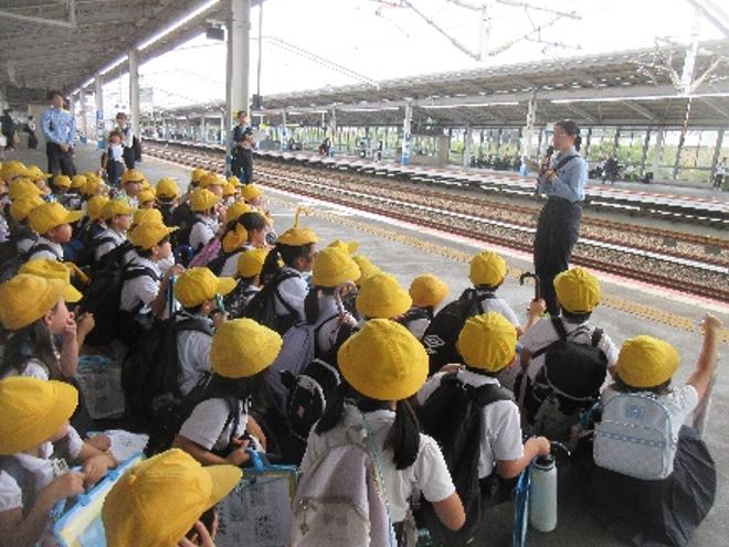 2年生は社会見学で福山駅周辺に行きました。駅で話を聞いたり駅の周りを散策したりしました。一生懸命聞いたりメモを取ったりすることができました。